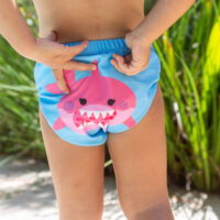 Bañador pañal pack de dos unidades de la marca Zoocchini. Uno de los bañadores es liso, mientras que el otro tiene impreso un dibujo en la parte delantera.