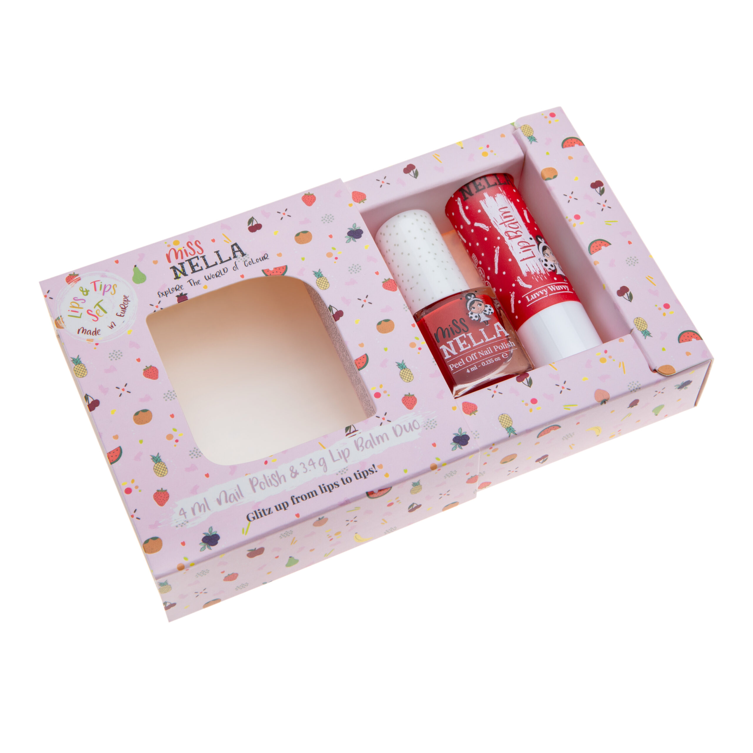 Este pack de esmalte peel-off + bálsamo labial combina color, brillo y cuidado en un solo set pensado para los más pequeños.